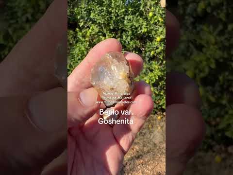 La goshenita es de color incoloro, blanco o blanquecino. Es una variedad pura del berilo, una familia de minerales que incluye gemas de colores como la esmeralda y la aguamarina, pero la goshenita se caracteriza por su ausencia de impurezas es por eso que suele ser transparente lúcida, algunas veces blanquecina.