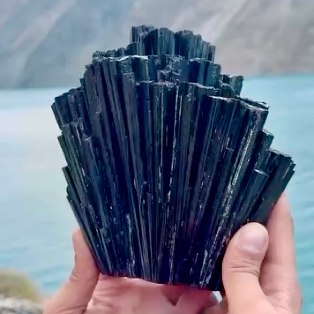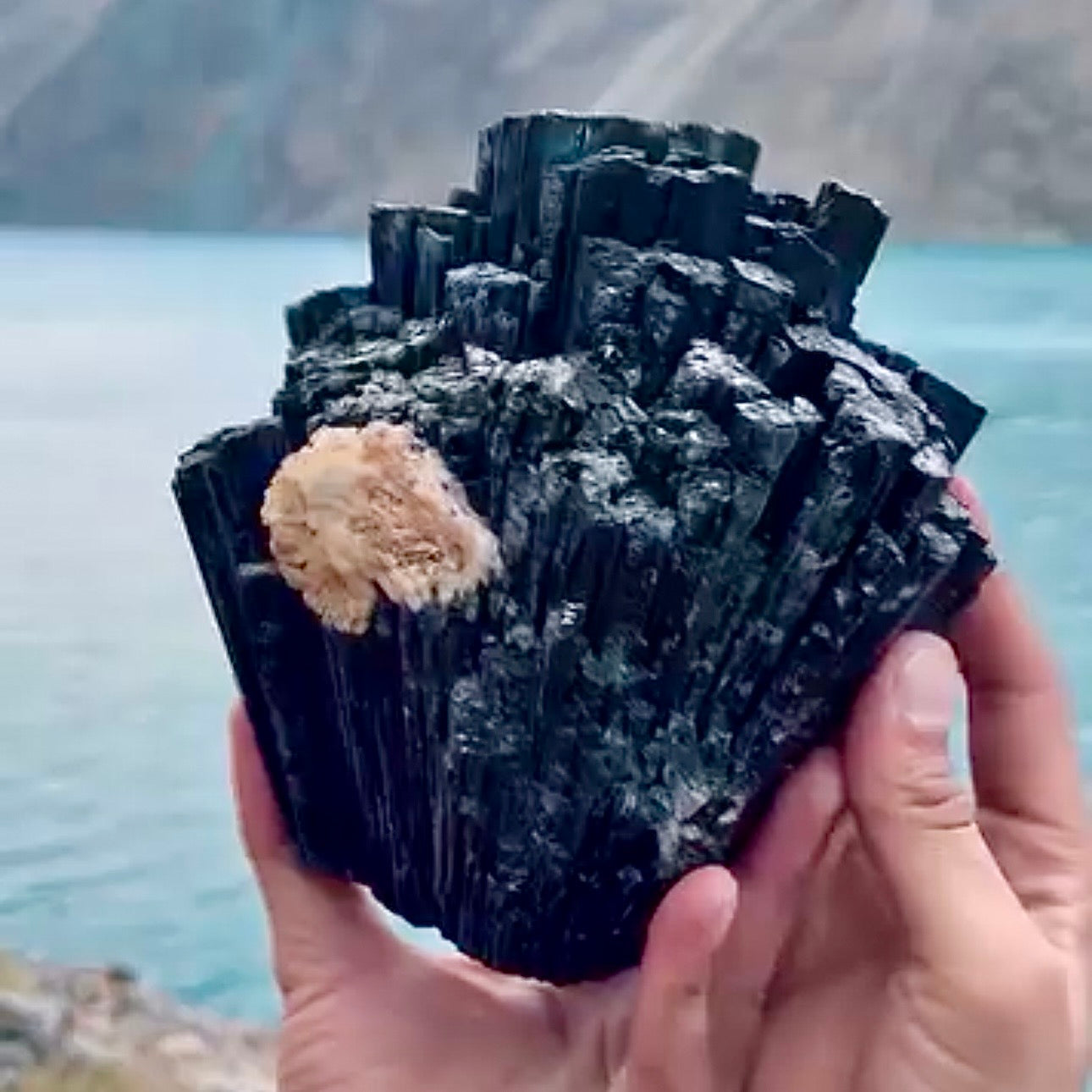 Extraordinaria turmalina negra de gran calidad con hábitat inusual en este tamaño.