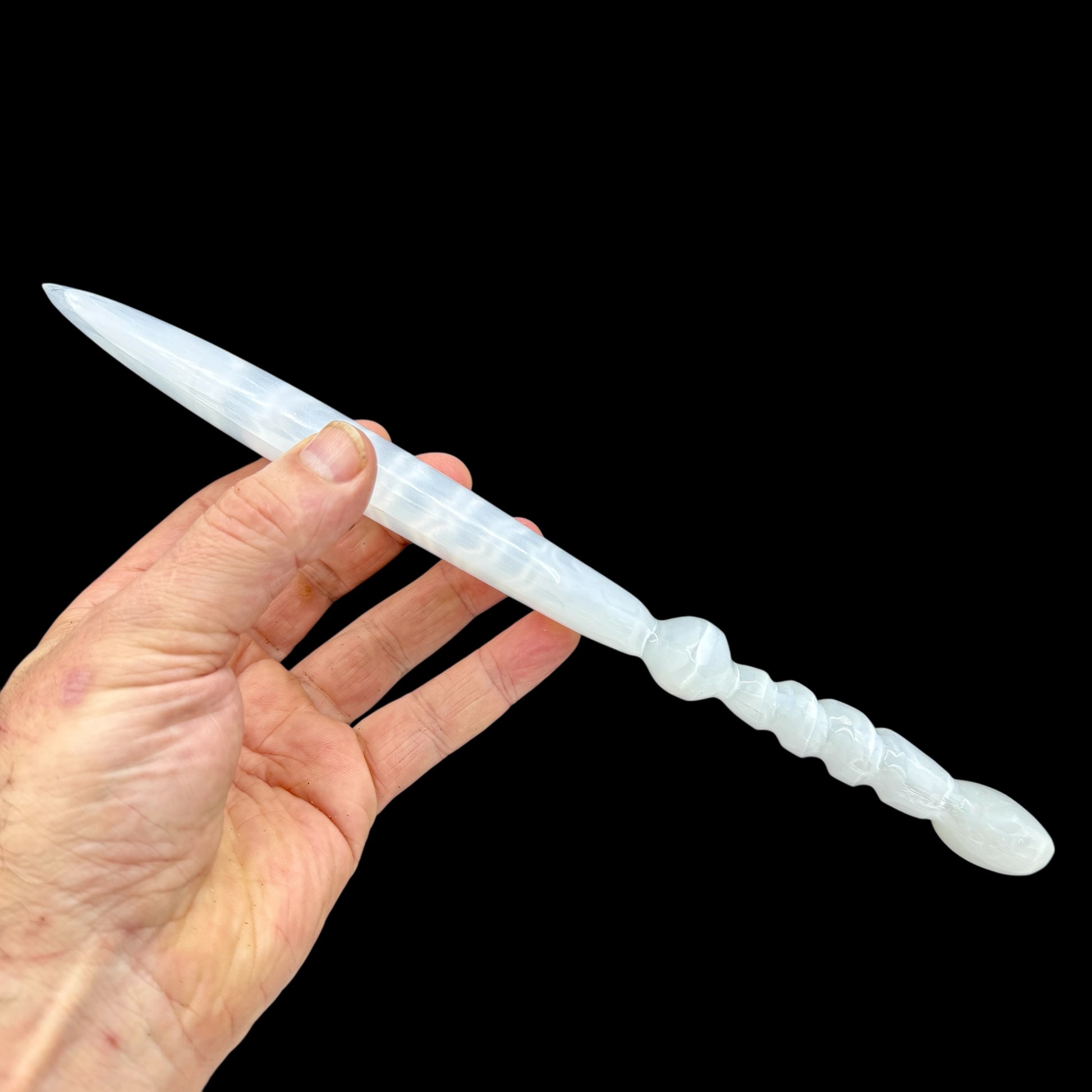 La selenita de las fotos y el video es de muestra, se enviará una similar. Las medidas y el peso son aproximadas para cada una de las disponibles.