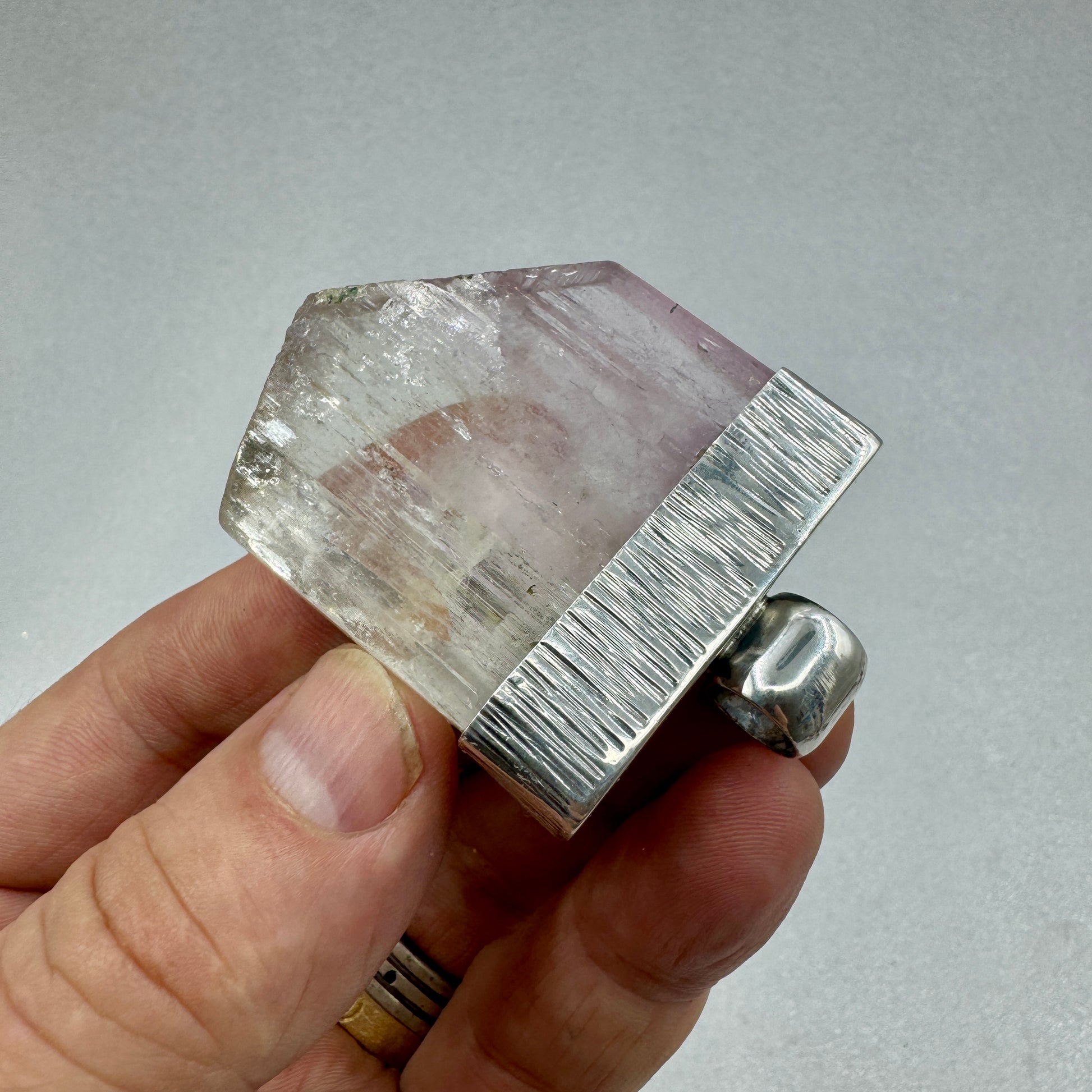 Cargar la Kunzita por medio de un cristal de Cuarzo eleva la energía hasta una frecuencia capaz de acabar con todos los bloqueos que oprimen el chakra del corazón.
