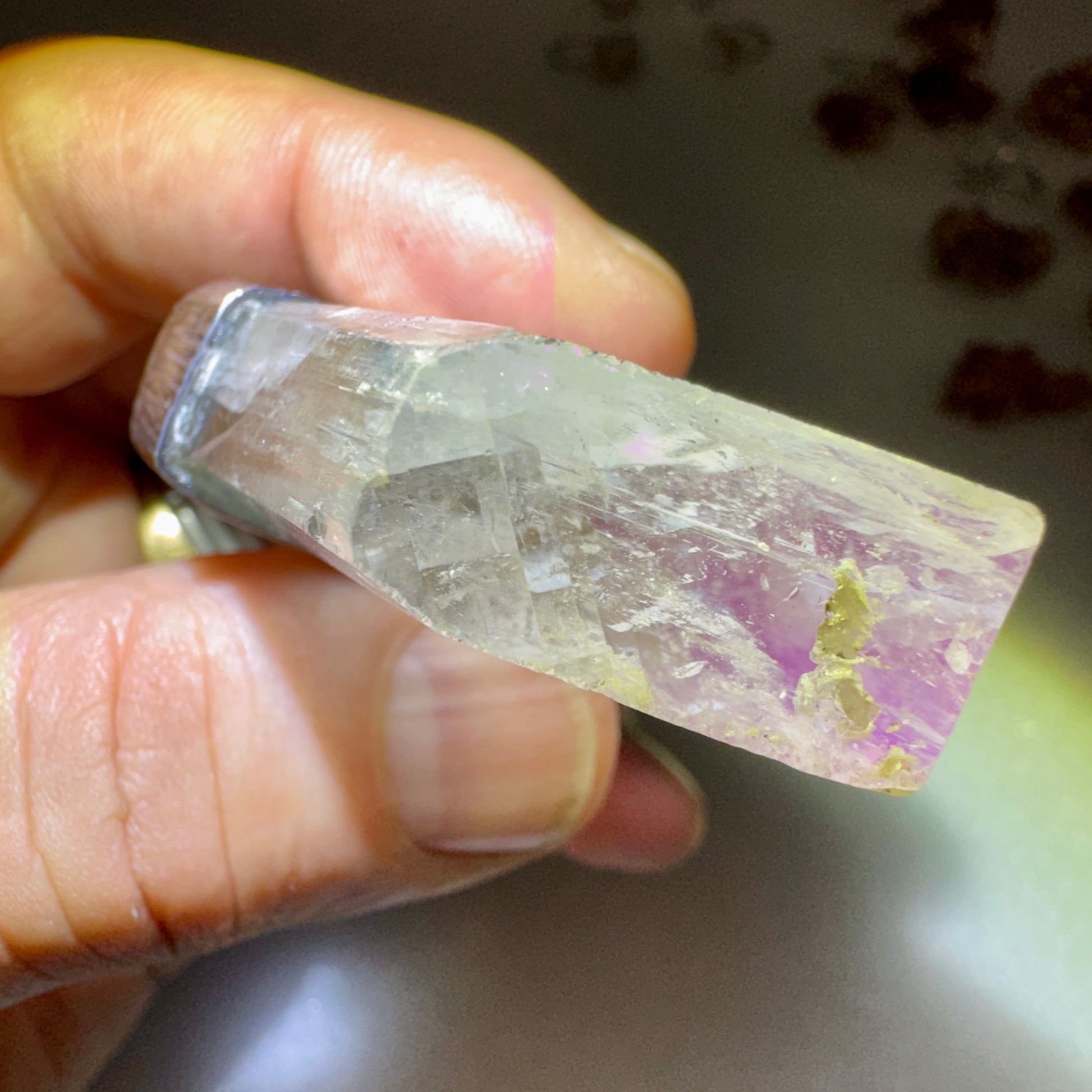 Si se observa detenidamente la Kunzita, se observan rayos a la vez rosados y levemente púrpuras, de esta manera equilibra la mente (púrpura) y el corazón (rosa).